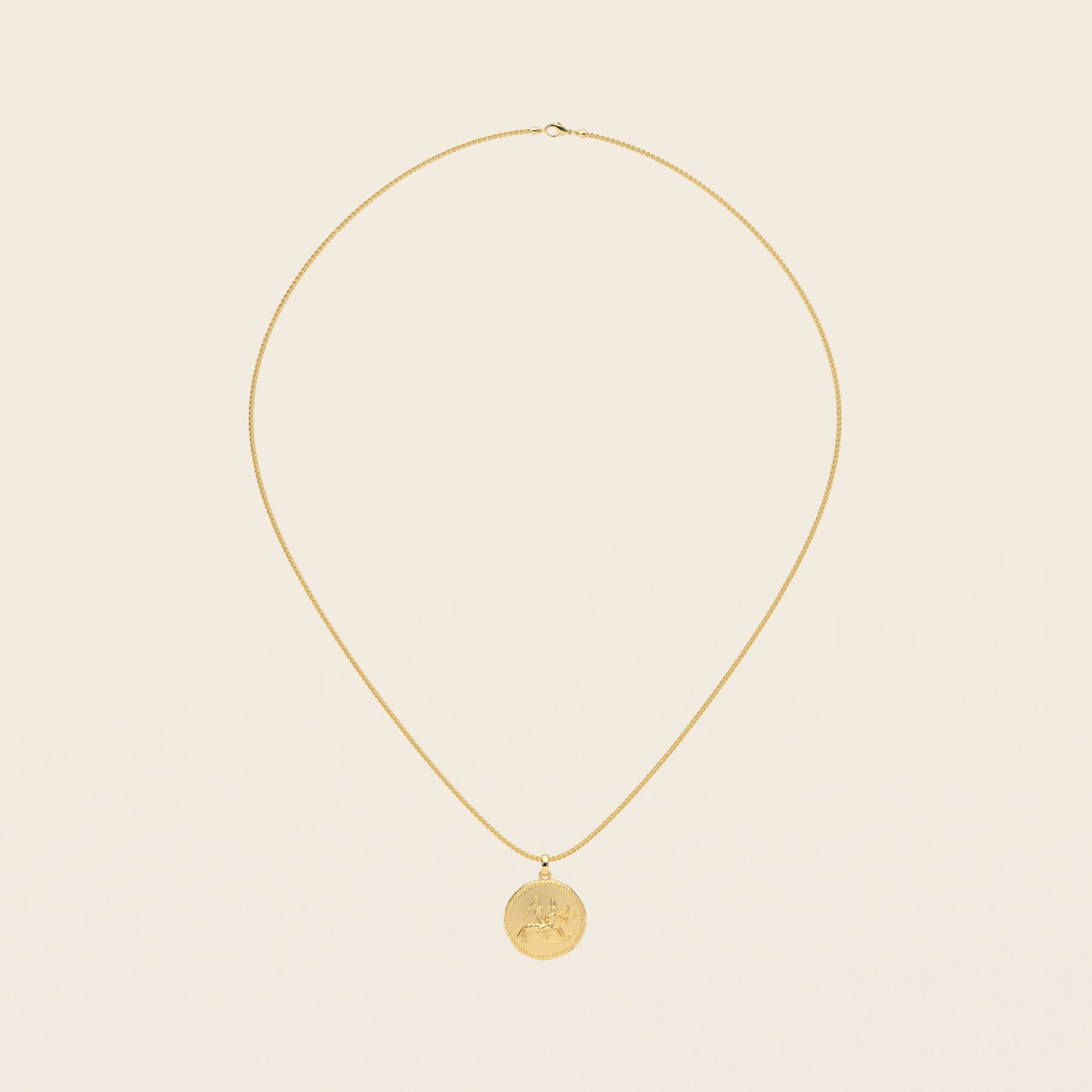 Cast in 18k yellow gold, the Sagittarius Demi Stater pendant expresses this ascent with clarity and purpose. The archer’s gesture and rising arc convey focus of aim and the disciplined freedom of movement toward truth. Worn as a talisman of intention and insight, it aligns the wearer with vision carried forward through purposeful motion. The reverse bears the nbw nfr seal, “fine gold, perfect gold,” affirming aspiration as a living trajectory guided by awareness.