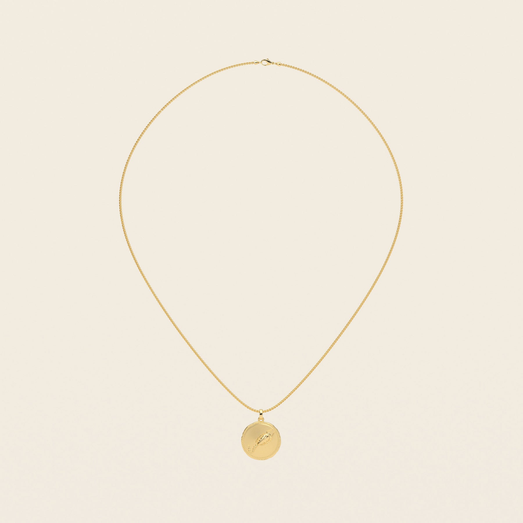 Cast in 18k yellow gold, the Scorpio Demi Stater pendant expresses this alchemy with clarity and tension. The sculpted figure holds the moment of passage, carrying the charge between release and regeneration. Worn as a talisman of renewal and inner strength, it aligns the wearer with the regenerative force that moves through endings into new life. The reverse bears the nbw nfr seal—“fine gold, perfect gold”—affirming transformation as an integral movement within wholeness.