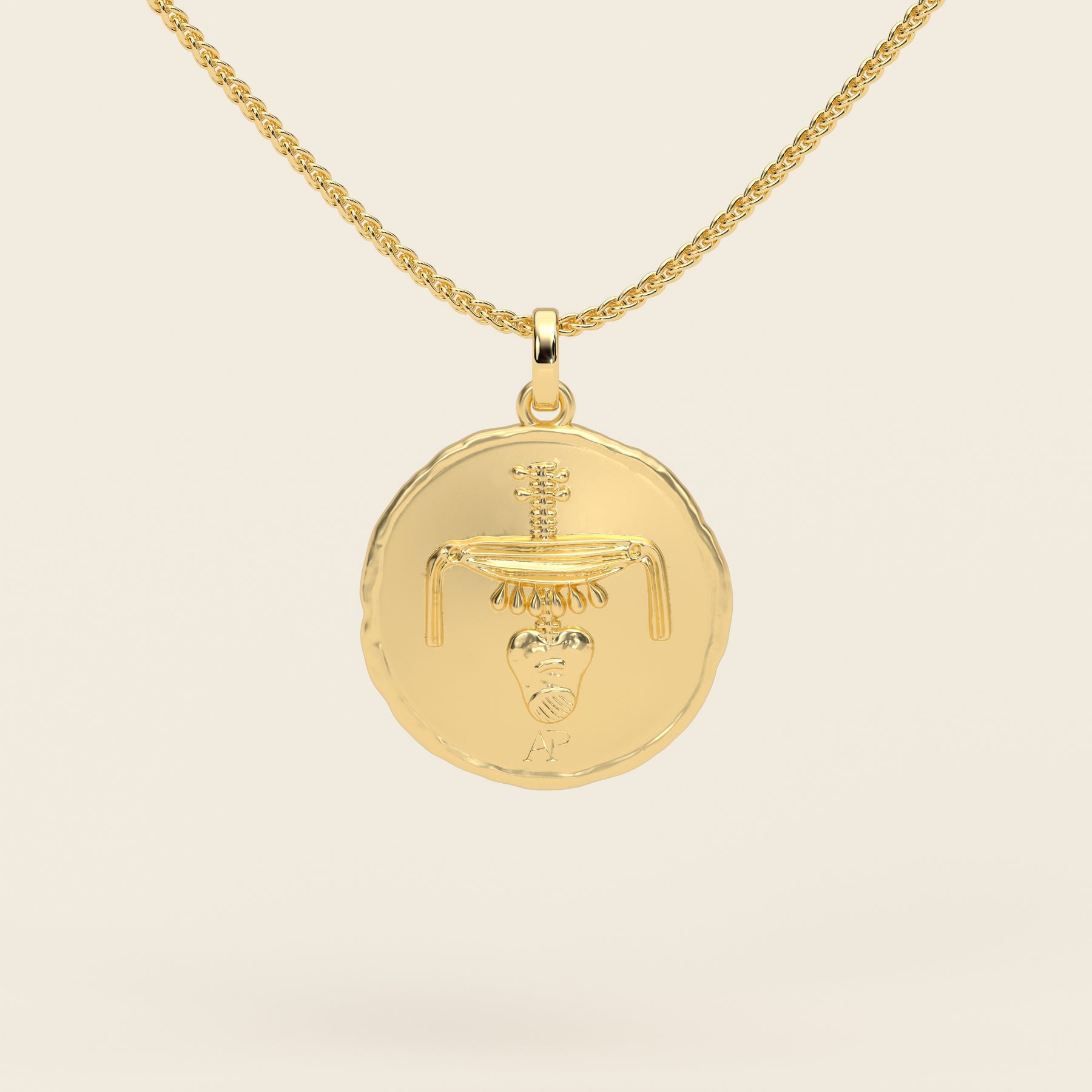Cast in 18k yellow gold, the Taurus Stater pendant embodies this sacred strength with commanding presence. The bull’s form is sculpted in disciplined relief, balanced between tension and repose, permanence and grace. Worn as an anchor of stability and resolve, it affirms continuity, patience, and the power of remaining. The reverse bears the nbw nfr seal—“fine gold, perfect gold”—the mark of endurance refined into beauty, where form itself becomes sacred.
