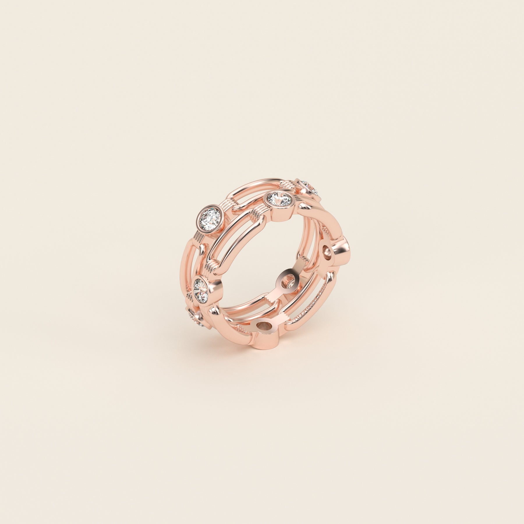 Shen — Ring — Double Link Band — Bezel-Set Diamond — 18k Rose Gold