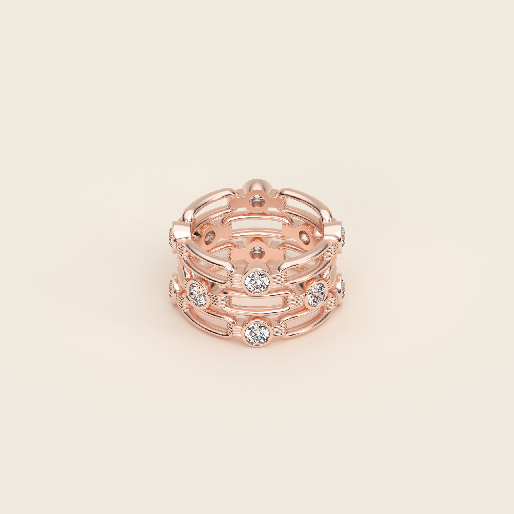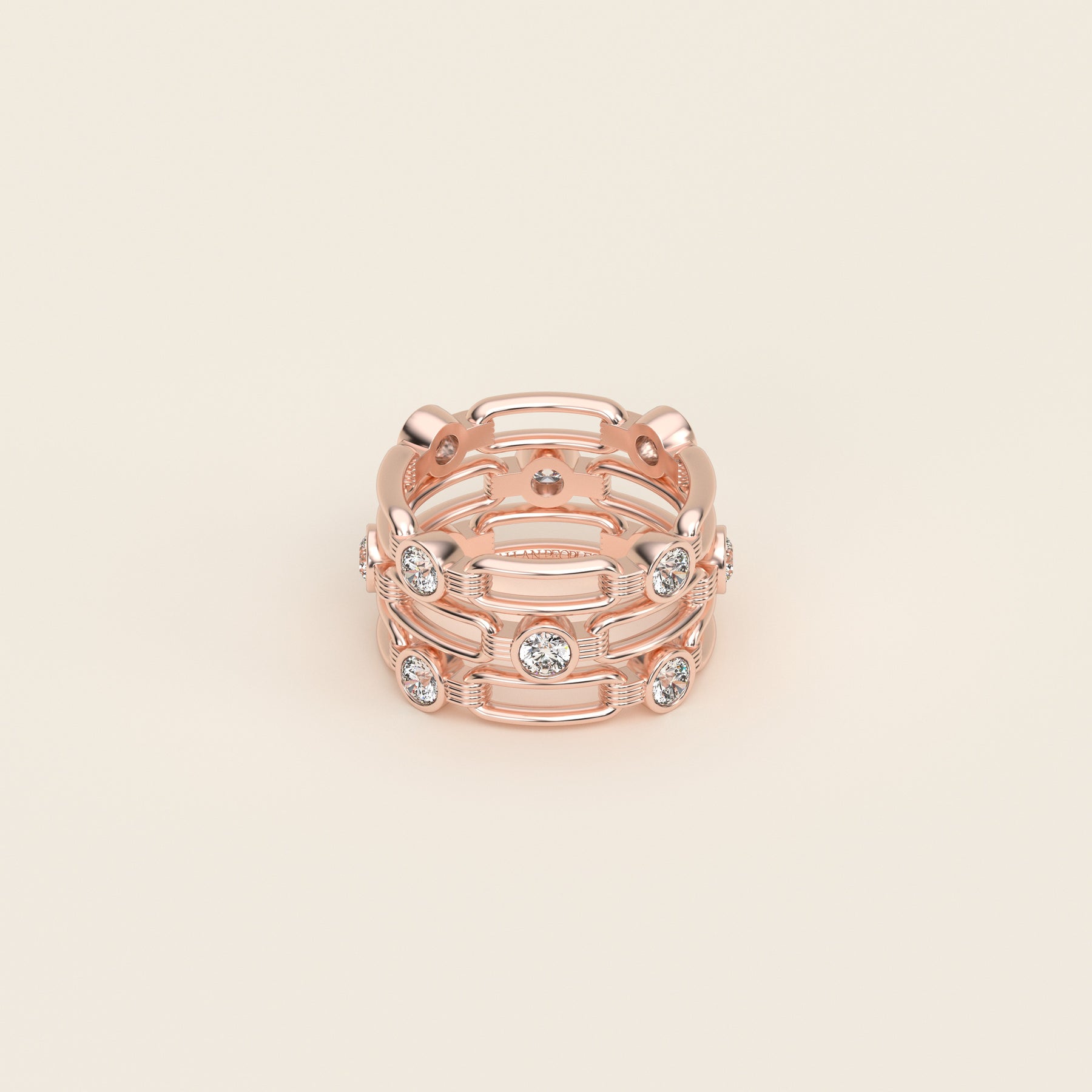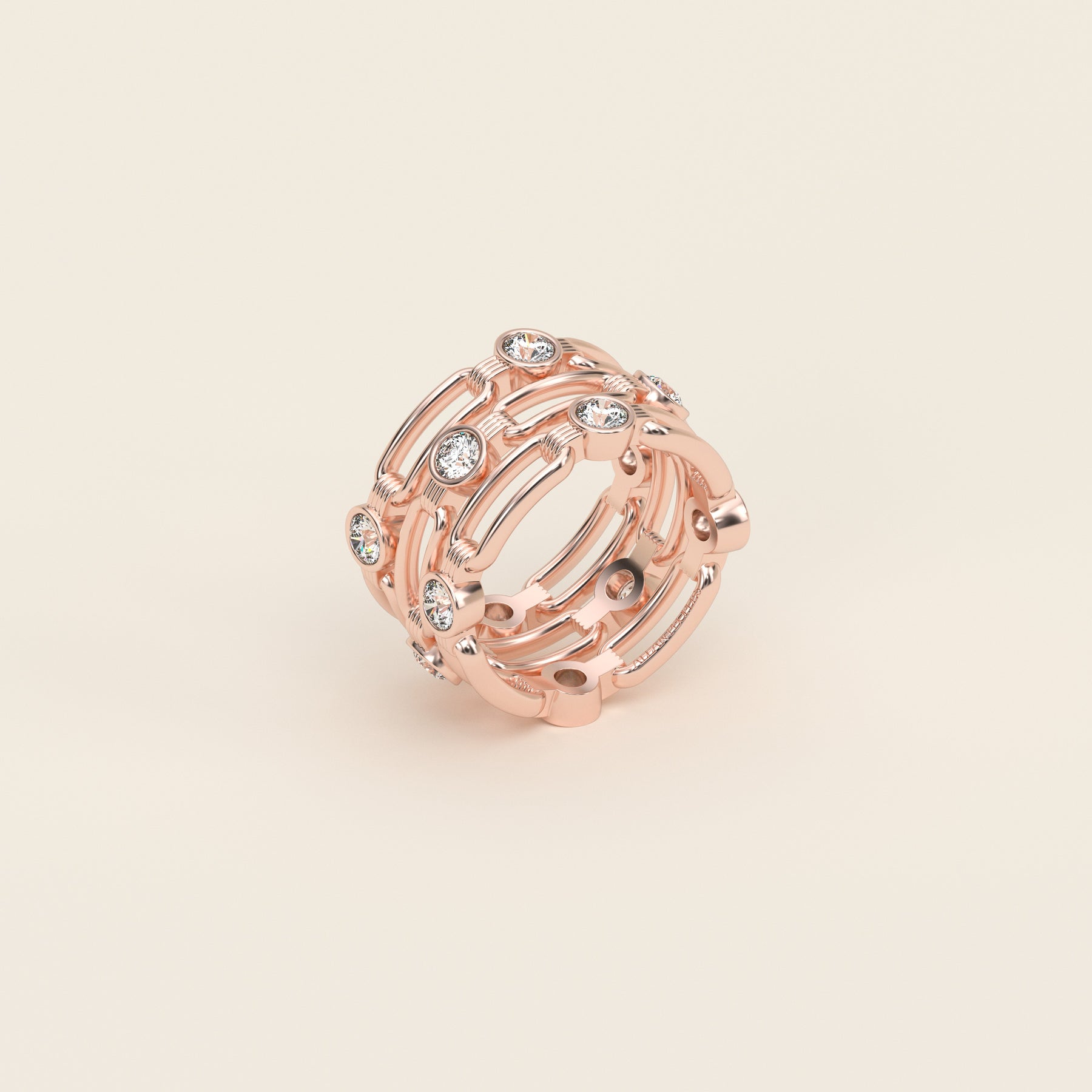 Shen — Ring — Triple Link Band — Bezel-Set Diamond — 18k Rose Gold