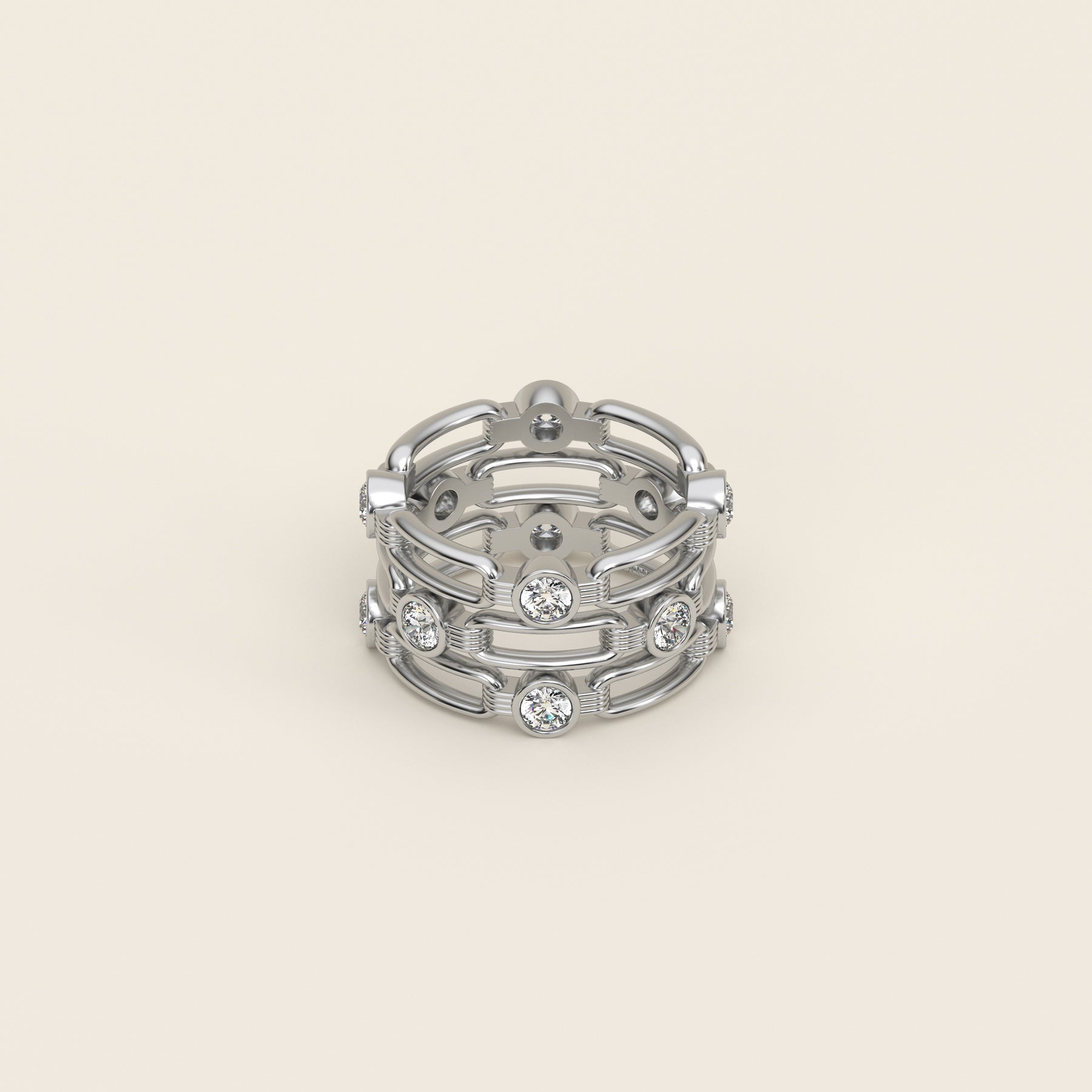 Shen — Ring — Triple Link Band — Bezel-Set Diamond — Platinum