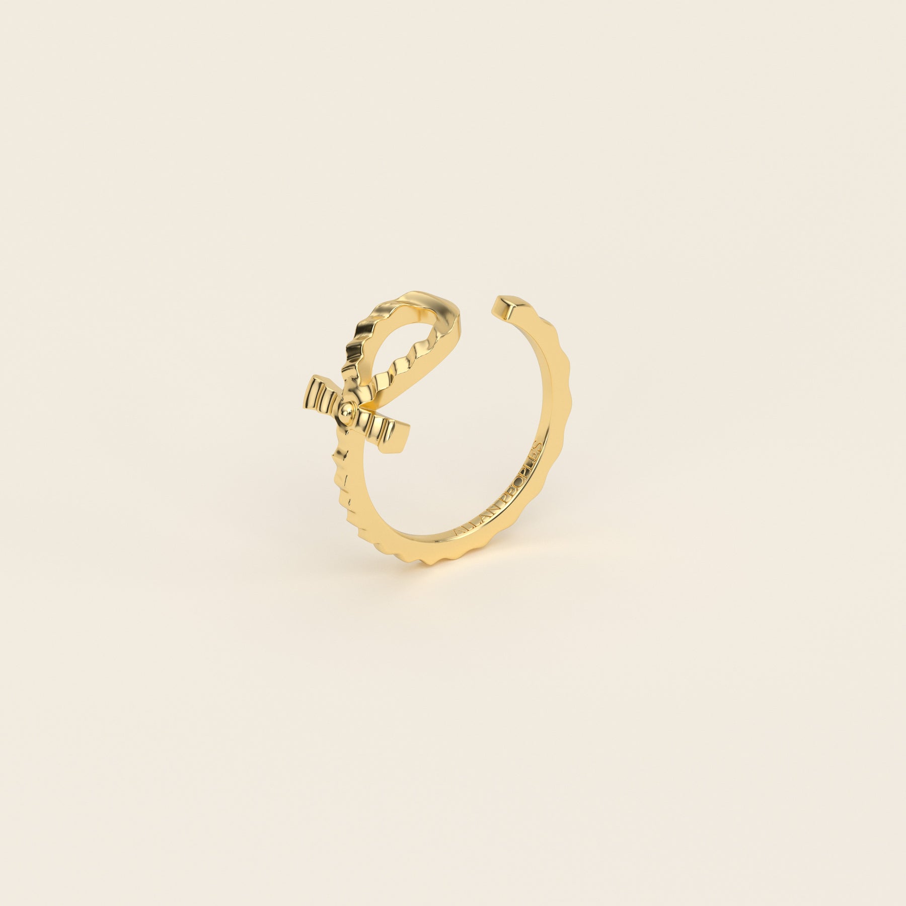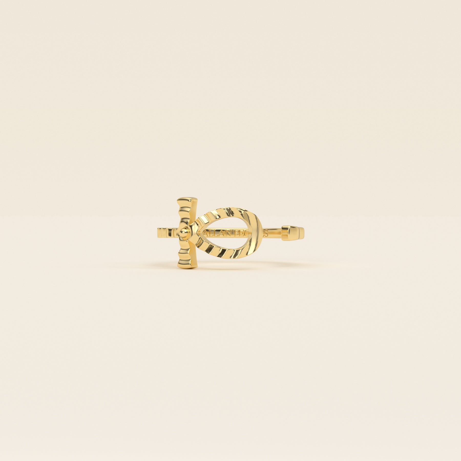 This ring features a subtly rippled surface that introduces movement across the band while preserving the clarity of the Ankh form. The texture adds depth and variation without interrupting the structure of the symbol.