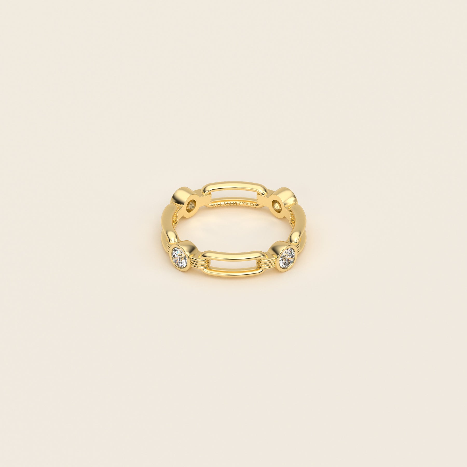 Shen — Ring — Single Link Band — Bezel-Set Diamond — 18k Yellow Gold