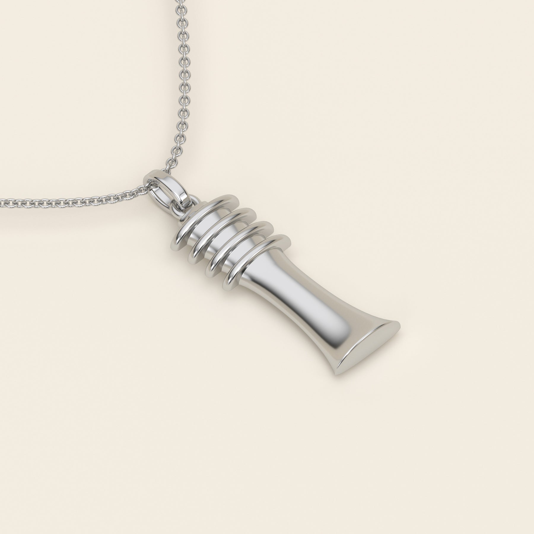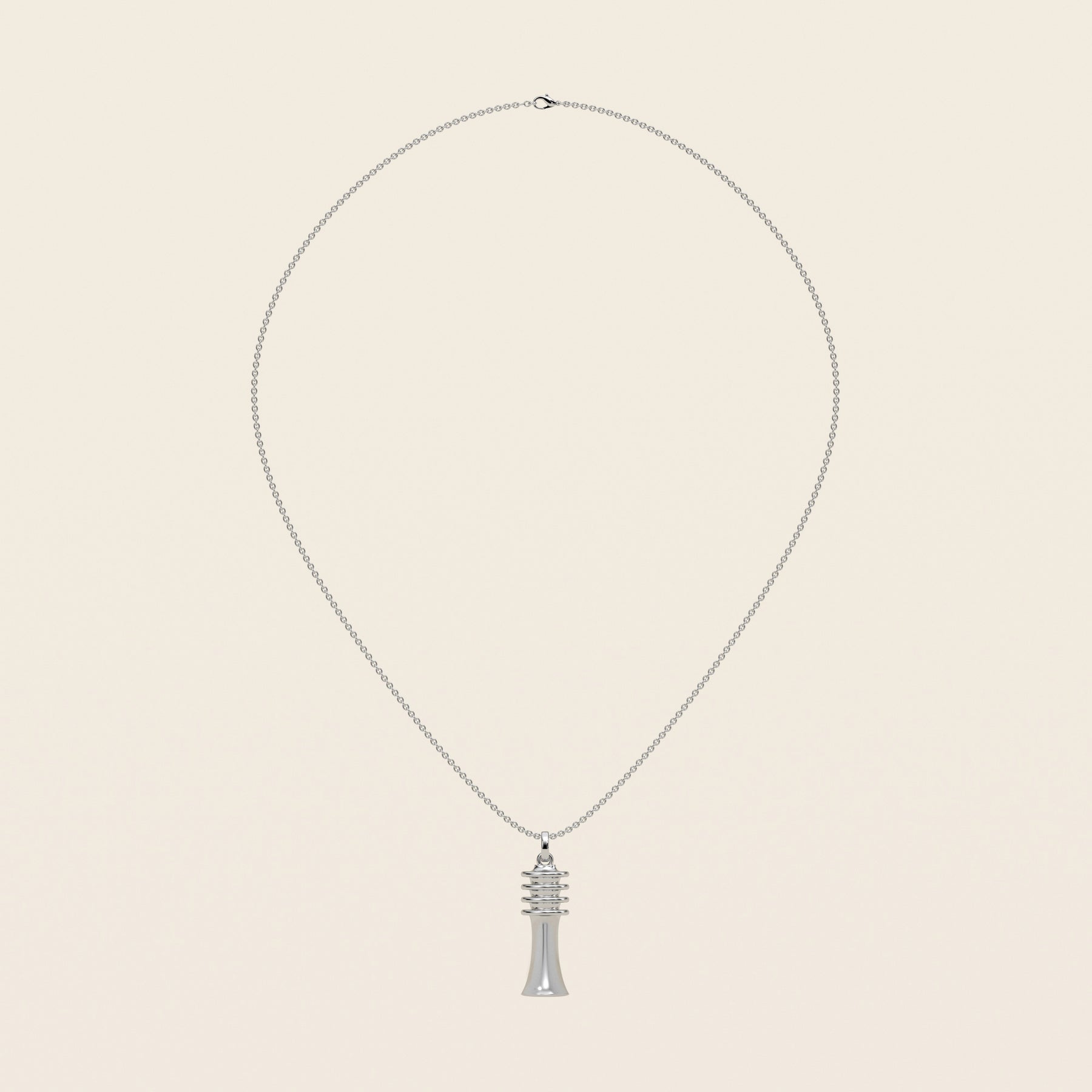 This pendant presents the djed in a clear and measured form. The design emphasizes structure and alignment, allowing the geometry of the symbol to remain precise and legible.